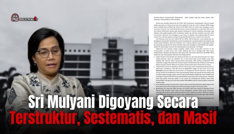 PODCASTNEWS.ID – Gelombang air bah yang menggulung kementerian keuangan tak habis habisnya. Sri Mulyani dan kementerian yang dipimpinnya terus digoyang. Dari rangkaian peristiwa pengungkapan harta tak wajar Rafael Alun Trisambodo yang kemudian berlanjut bak efek domino ke kasus dugaan TPPU senilai Rp 3 Triliun, serta terbaru surat terbuka pegawai milenial Bea Cukai, mengesankan adanya mosi tidak percaya atas kepemimpinan Sri Mulayani.