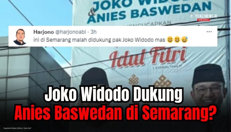 PODCASTNEWS.ID – Seorang netizen dengan akun Twitter @harjonoabi mengunggah foto sebuah baliho bergambar Anies Baswedan di bagian kanan dan seorang pria di sebelah kiri. Baliho tersebut bertuliskan: Joko Widodo dan Anies Baswedan Mengucapkan Selamat Idul Fitri 1 syawal 1444 H, Mohon Maaf Lahir Batin.