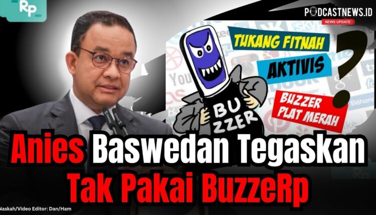 PODCASTNEWS.ID – Calon Presiden dari Partai Nasdem Anies Baswedan menegaskan dirinya tak menggunakan jasa buzzer berbayar atau istilahnya Buzzer Rp dalam pencapresannya. Anies menyatakan hal tersebut dalam acara podcast Pakar Hukum Tata Negara dan Pengamat Politik Refly Harun.