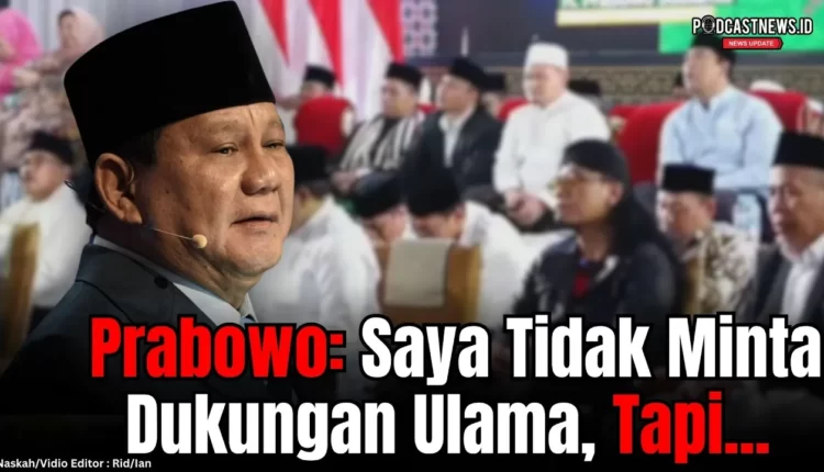 Meski demikian, Prabowo hanya minta didoakan agar cita-citanya membawa Indonesia menjadi lebih baik bisa terwujud. “Saya tidak berharap dukungan dari para ulama. Jadi tolong catat dan rekam imi,” katanya. “Tapi kalau di dalam hati saya, saya berharap dukungan, kan boleh,” kata Prabowo yang disambut tertawa audiens.