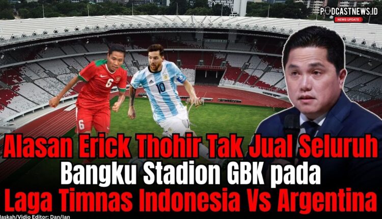 PODCASTNEWS.ID – Ketua Umum Persatuan Sepak Bola Seluruh Indonesia (PSSI) Erick Thohir mengungkap pihaknya tidak menjual tiket berdasarkan jumlah kapasatis maksimal Stadion Utama Gelora Bung Karno (GBK).