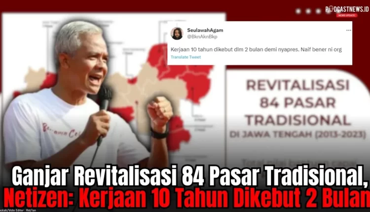 PODCASTNEWS.ID – Gubernur Jawa Tengah Ganjar Pranowo memamerkan prestasinya yang sukses merevitalisasi sebanyak 84 pasar tradisional di Jawa Tengah sepanjang tahun 2013 hingga 2023.