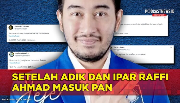 PODCASTNEWS.ID – Ramai di media sosial netizen menyorot adik ipar dan adik kandung Raffi Ahmad yaitu Jeje Govinda dan Nisya Saadia Ifat Ahmad bergabung ke PAN. Sorotan netizen tersebut seperti terlihat di akun Twitter detik kom yang menulis status: