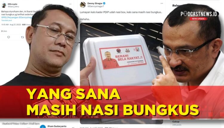 PODCASTNEWS.ID – Pegiat media sosial, Denny Siregar nge-spill foto nasi box yang diberi label stiker foto calon legislatif dari Partai Demokrasi Indonesia Perjuangan (PDI-P) Ferdinan Hutahean, pada postingan terbarunya di platform X -dulu Twitter-, Minggu 27 Agustus 2023.