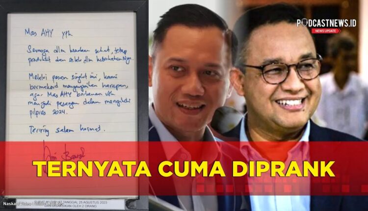 Tepatnya pada tanggal 25 Agustus 2023, Anies mengirimkan “Surat Cinta Untuk AHY”. Dalam surat tulisan tangan yang ditandatangani oleh Anies itu, ia meminta secara resmi agar AHY bersedia untuk menjadi Cawapresnya.