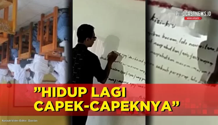 PODCASTNEWS.ID – Sebuah video unik ak memperlihatkan aksi seorang guru laki-laki yang memberi kisi-kisi ujian untuk muridnya. Yang unik, sang guru yang sedang menuli materi kisi-kisi di papan tulis mengerjai muridnya dengan tulisan terbalik.