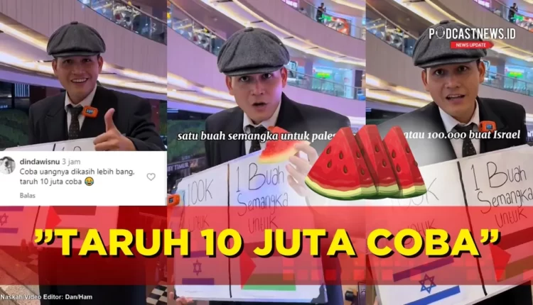 PODCASTNEWS.ID – Viral video yang menunjukkan dua orang sedang mengetes dukungan untuk Palestina atau Israel kepada pengunjung di salah satu mal. Salah seorang memegang papan dengan tulisan 100 K dan uang Rp100 ribu untuk Israel di sebelah kiri.