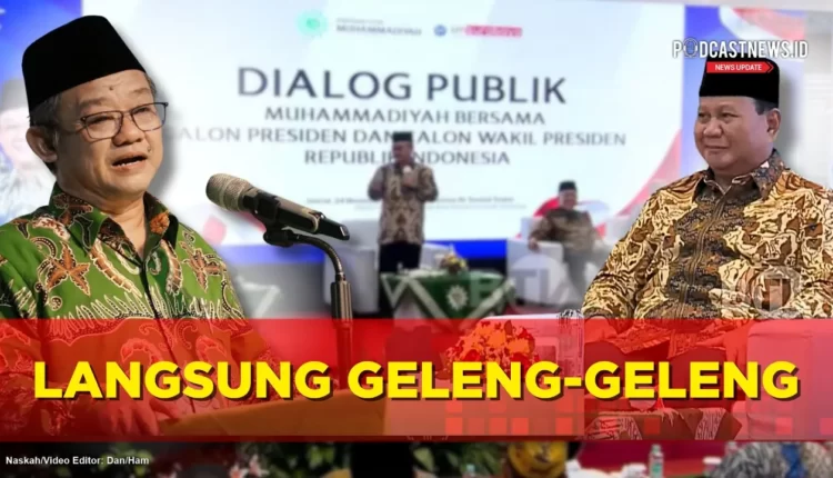 PODCASTNEWS.ID – Capres nomor urut 2 Prabowo Subianto menghadiri Dialog Terbuka Muhammadiyah Bersama Calon Pemimpin Bangsa di Universitas Muhammadiyah Surabaya, Jawa Timur. Moderator acara tersebut yaitu Sekretaris Umum Pimpinan Pusat Muhammadiyah Abdul Mu’ti berseloroh menawari Prabowo menjadi khatib salat Jumat.