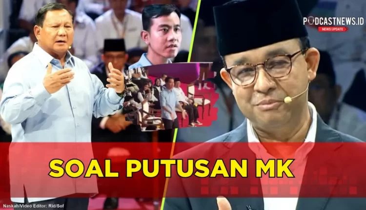 PODCASTNEWS.ID – Gestur Cawapres nomor urut 2 Gibran Rakabuming Raka terlihat emosional ketika Capresnya Prabowo Subianto mendapatkan pertanyaan dari Anies Baswedan tentang Putusan Mahkamah Konstitusi Nomor 90/PUU-XXI/2023.