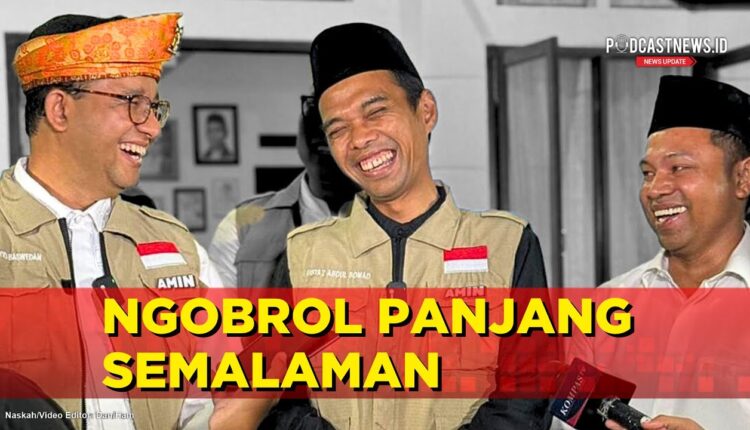 PODCASTNEWS.ID – Capres nomor urut 1 Anies Baswedan mengunggah video bersama Ustaz Abdul Somad (UAS). Anies menyatakan menginap di rumah UAS dan menghabiskan waktu berdiskusi panjang pada malam hari.