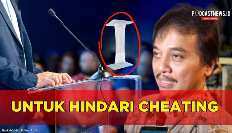 “Untuk menghindari CHEATING (Curang) adanya HIDDEN/REMOTE PROMPTER. Saya mendesak agar PODIUM dibuat TRANSPARAN seperti ini, MURAH dengan bahan AKRILIK cukup,” ujar Roy dalam pesan singkatnya kepada Podcastnews.id, Rabu 20 Desember 2023. “Juga tidak perlu 2 MIC seperti kemarin, cukup CLIP ON (tanpa HEADSET). Kalau perlu ada MULTI-JAMMER anti ILLEGAL FEEDING. AMBYAR,” imbuhnya.