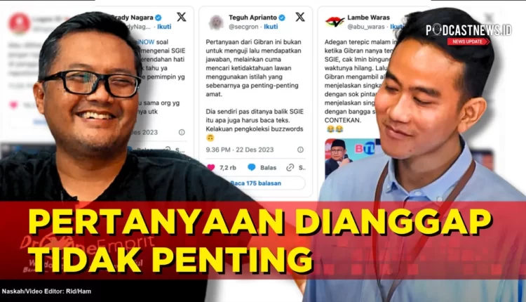 PODCASTNEWS.ID – Lembaga analisis media sosial Drone Emprit menyebut istilah State of the Global Islamic Economy (SGIE) yang ditanyakan oleh Gibran Rakabuming Raka berbuah sentimen negatif bagi Calon Wakil Presiden (Cawapres) pendamping Prabowo tersebut.