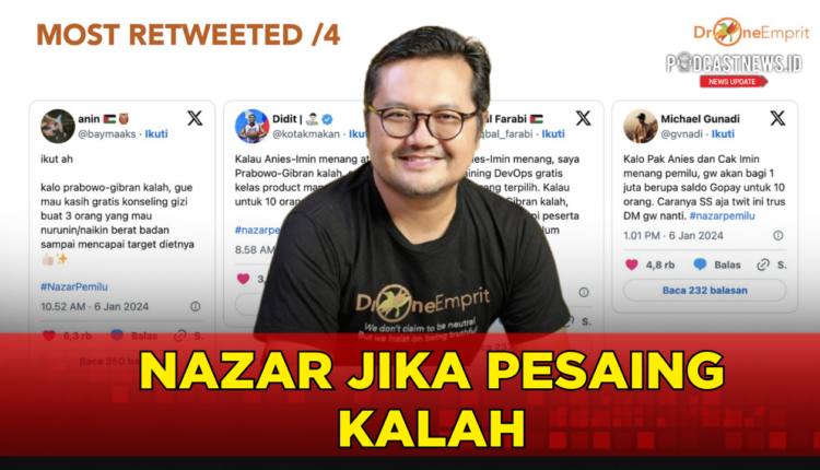 PODCASTNEWS.ID – Tagar #nazarpemilu sejak Sabtu 6 Desember hingga Minggu 7 Desember 2024 pagi, tengah menjadi trending topic di lini massa X -dulu Twitter.