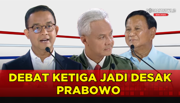 PODCASTNEWS.ID – Pelaksanaan Debat Capres ketiga yang berlangsung di Istora Senayan, Minggu (7/1/2024) malam, menjadi anti klimaks bagi penampilan Capres nomor urut 2, Prabowo Subianto.