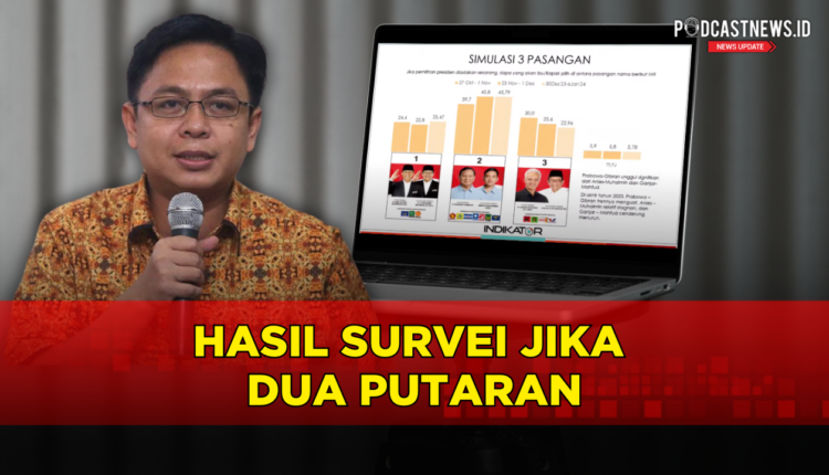 PODCASTNEWS.ID – Survei terbaru Indikator Politik Indonesia menunjukkan elektabilitas pasangan calon (paslon) nomor urut 2 Prabowo Subianto – Gibran Rakabuming cenderung stagnan di kisaran 45%, sehingga belum dapat dipastikan Pilpres 2024 berlangsung satu putaran.