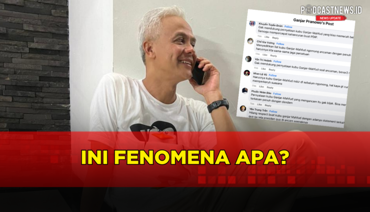 PODCASTNEWS.ID – Calon Presiden (Capres) nomor urut 3, Ganjar Pranowo mengungkapkan keheranannya lantaran postingan diakun facebook (FB) miliknya, mendadak diserbu komentar-komentar dari akun yang memiliki nama mirip dengan mayoritas orang Vietnam.