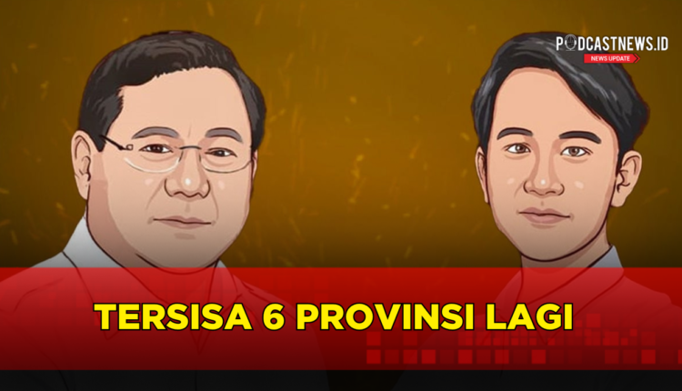 Dengan demikian, rekapitulasi penghitungan suara menyisakan enam provinsi lagi, yakni Jawa Barat, Maluku, Papua, Papua Pegunungan, Papua Tengah dan Papua Barat Daya.