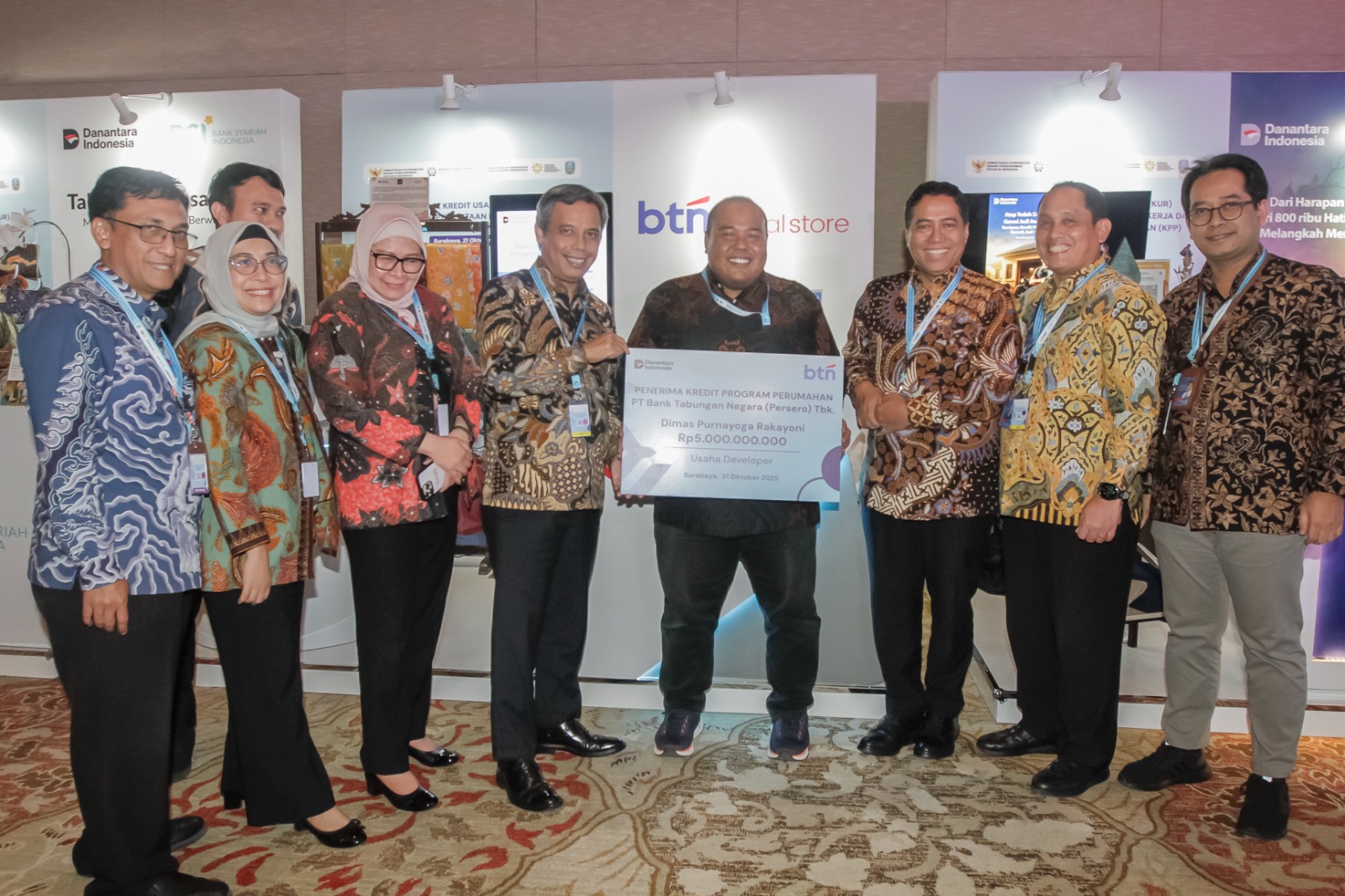 “Kami sudah mengidentifikasi ada 2.878 developer rumah, 5.442 kontraktor, dan 4.032 toko bangunan yang bisa mengakses KPP di BTN. Bahkan ada juga pedagang rumah. Kami berharap bisa menjadi mayoritas dalam menyalurkan kredit ini,” ujar Nixon usai Akad Massal Kredit Usaha Rakyat KUR 800.000 Debitur Penciptaan Lapangan Kerja dan Peluncuran Kredit Program Perumahan di Surabaya, Selasa (21/10).