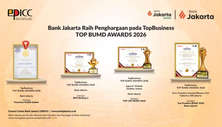 PODCASTNEWS.ID – Bank Jakarta raih sejumlah kategori penghargaan pada ajang TOP BUMD Awards 2026 yang diselenggarakan oleh Majalah Top Business bersama Institut Otonomi Daerah (i-OTDA) dan sejumlah lembaga independen di Jakarta (13/4). Penghargaan ini menjadi apresiasi yang positif di tengah upaya transformasi yang terus dijalankan oleh Bank Jakarta secara berkelanjutan.